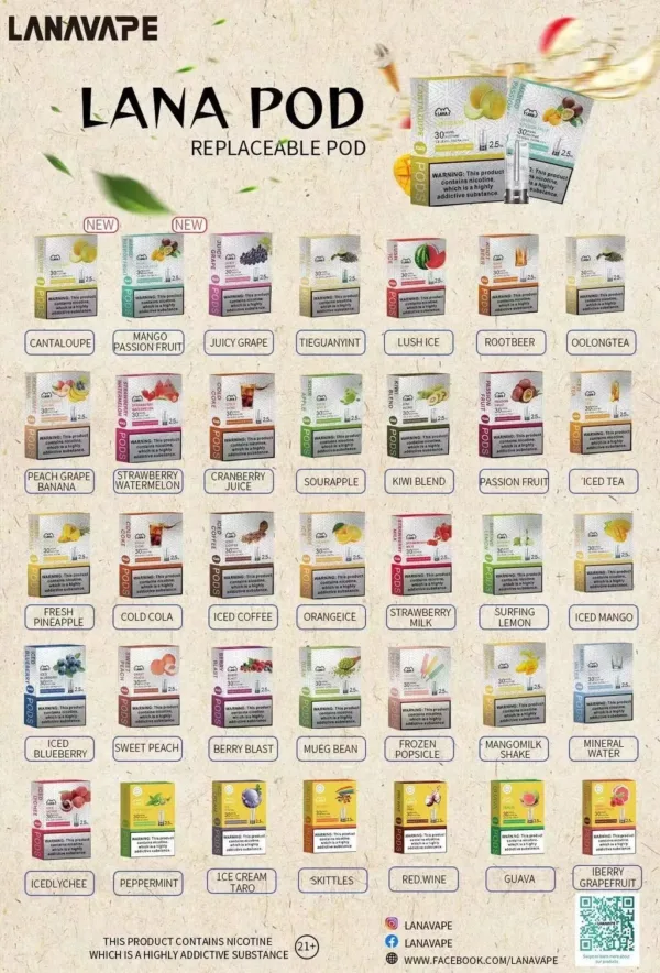 從清新水果到經典菸草,LANA拉納煙彈擁有超多口味選擇!無論是清爽的「薄荷」、甜蜜的「草莓牛奶」,還是沉穩的「烏龍茶」,總有一款能打動你的心!
